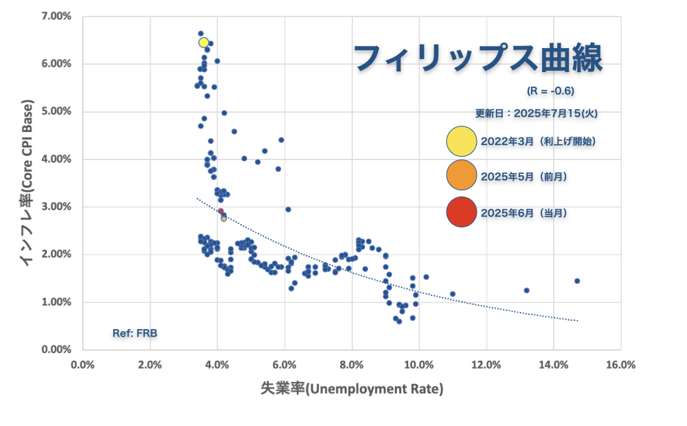 2025年6月現在のアメリカフィリップス曲線の値です。