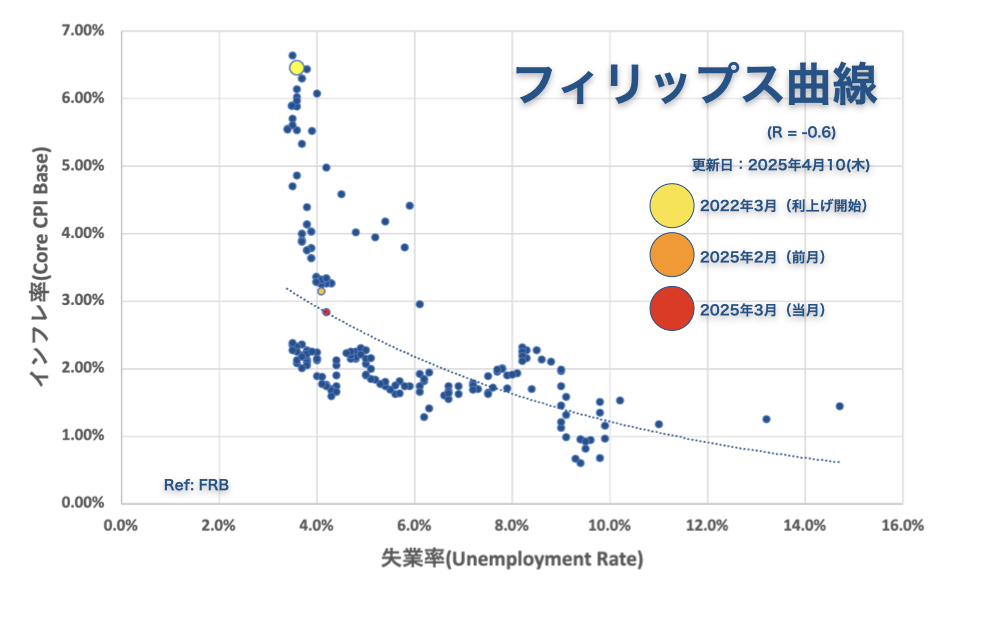 2025年3月現在のアメリカフィリップス曲線の値です。